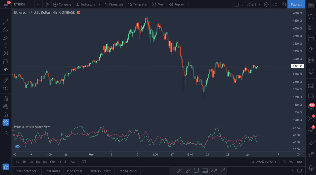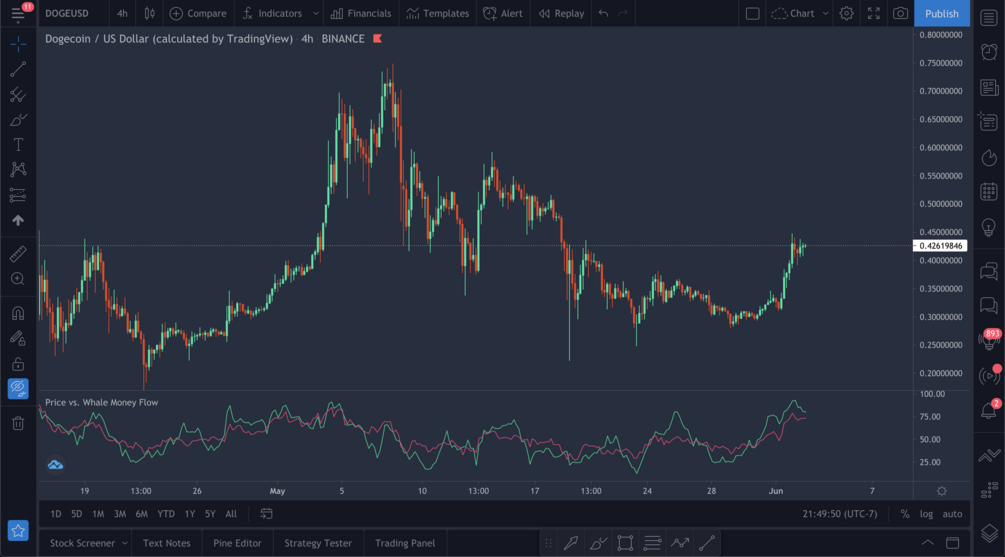 What you are paying for, is all of the coding work done above and beyond the TradingView "built-in" code that creates the pink price line which uses properties from the relative strength index. This includes adjusting color ratios, a custom code to create the green whale money flow line, coding these two indicators to work perfectly together, removing original code data to clean up visual appeal. Not getting these ratios correct will mess up the indicator and cause it to misfunction so please don't change the extra code work I've done. Please reference our Terms and Conditions page on our website listed below labeled 'Use of TradingView Indicators' in order to understand how we use indicators within our code. By purchasing this product, you agree to the Terms and Conditions, Refund Policy, and Disclaimers found on our website at https://www.tradeconfident.io/terms-and-conditions/