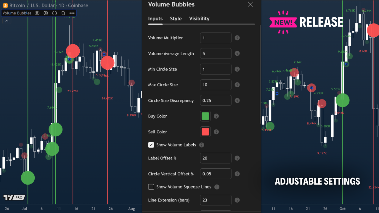 🔔 Custom alerts when large Buy or Sell volume bubbles appear