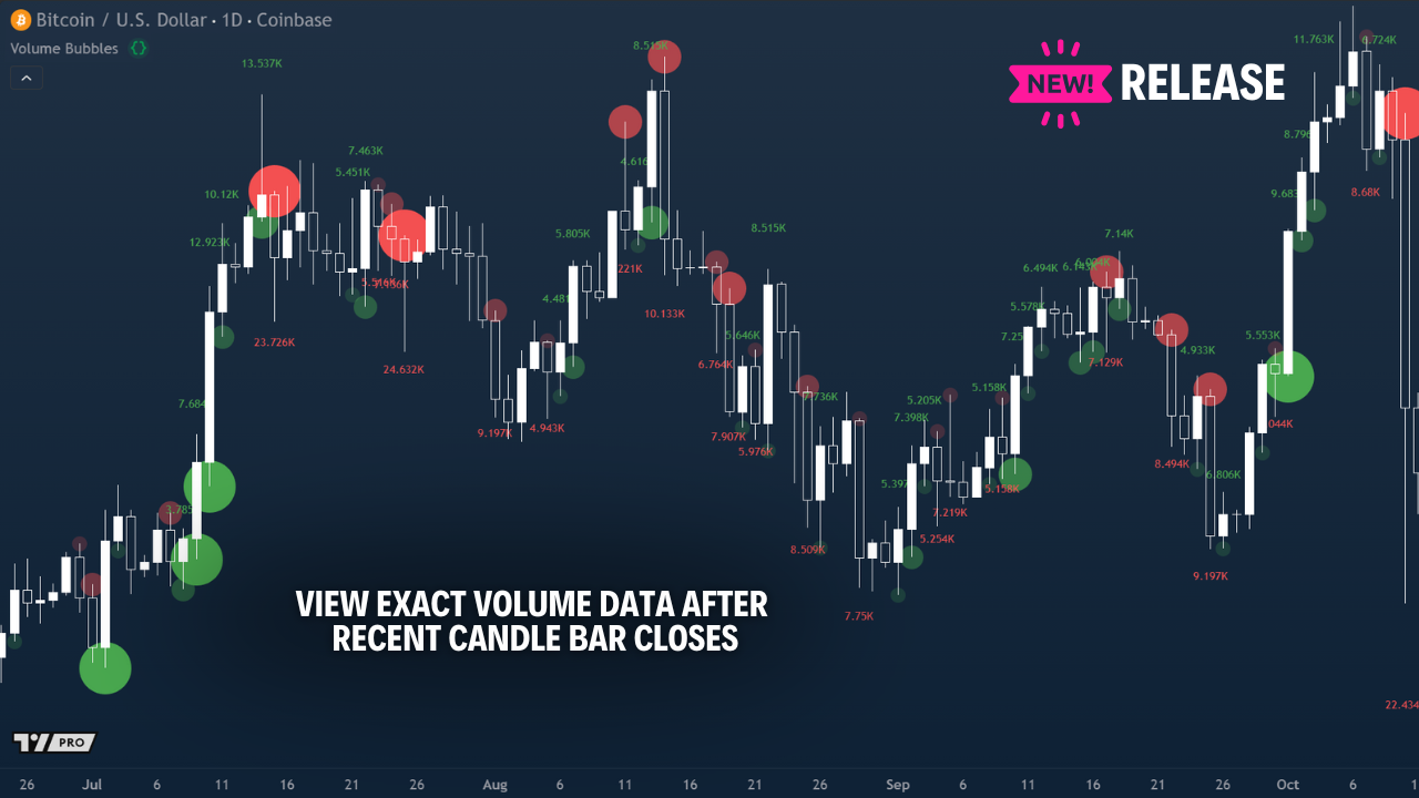 ⚡ Real-time volume data showing the exact order size after candle close on large volume candles